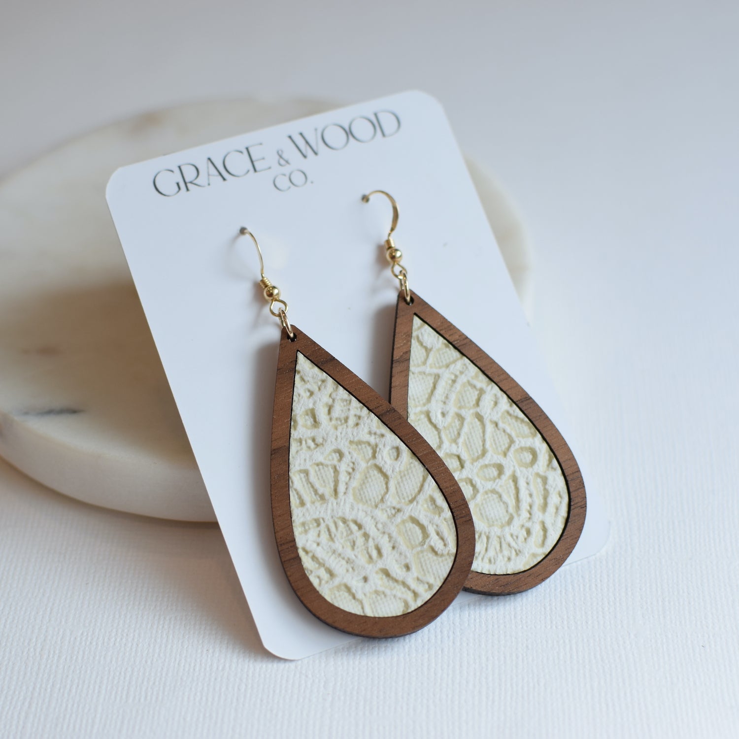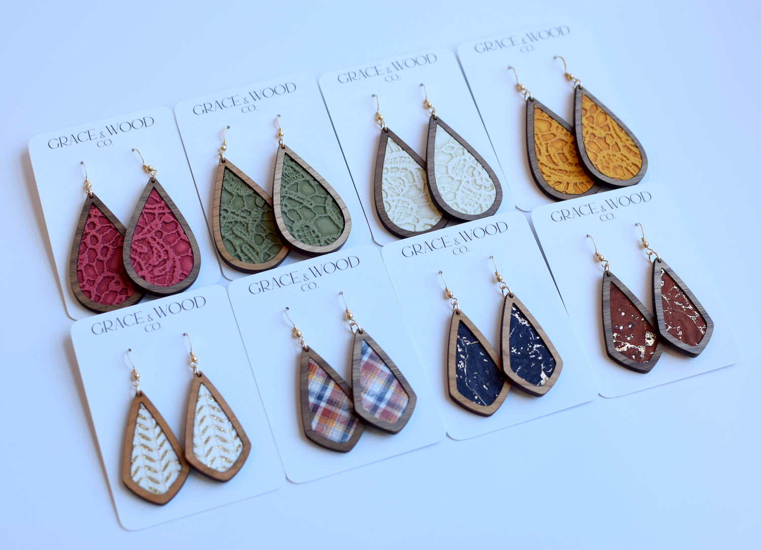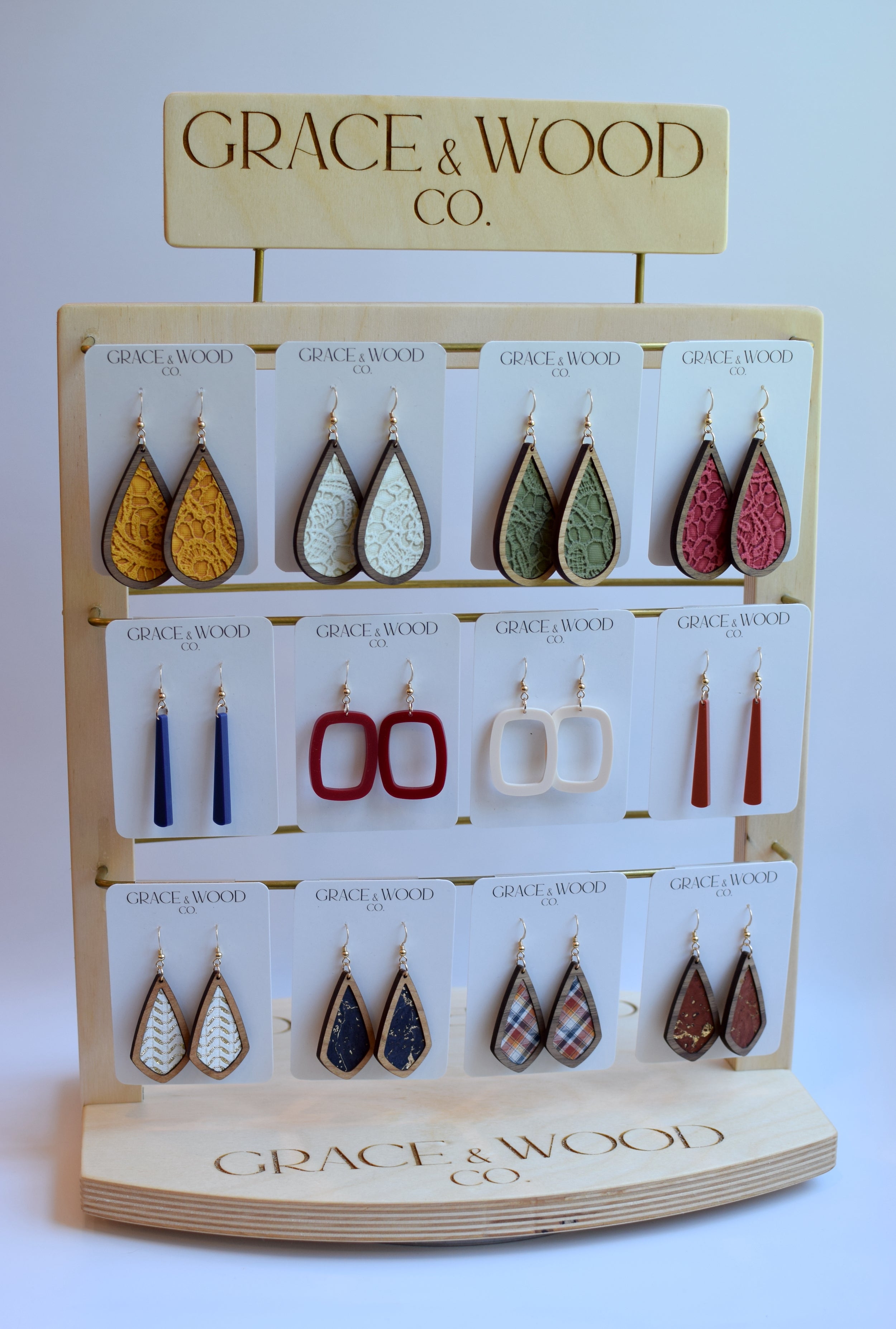 All Grace & Wood Co. earrings are handcrafted and lightweight. We use quality metals that are hypoallergenic including 14k Gold Filled, Sterling Silver, or Titanium for post