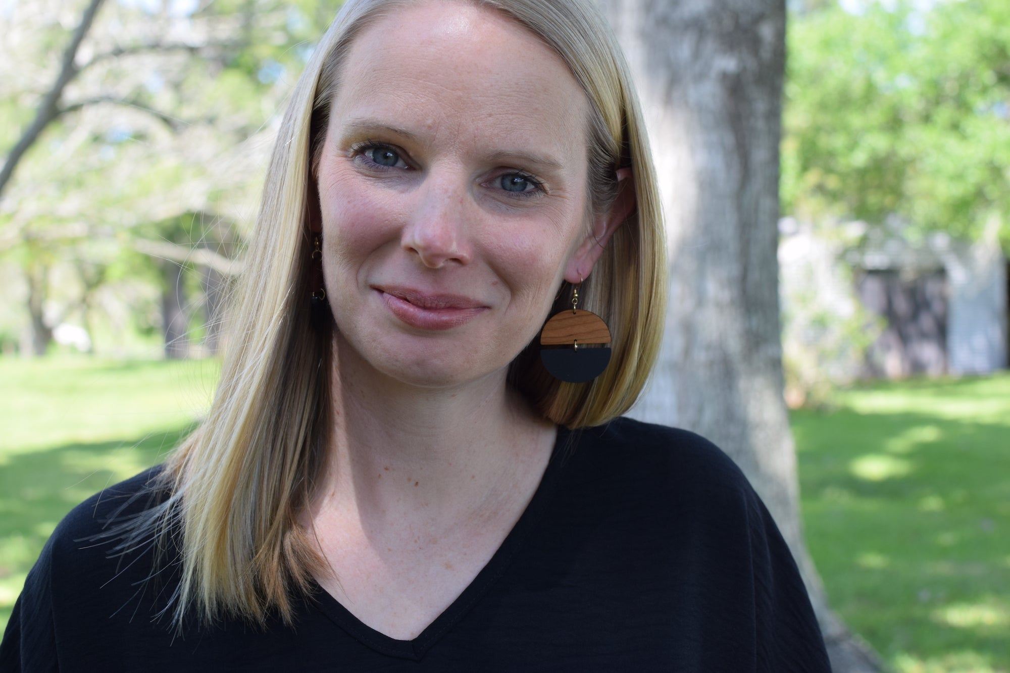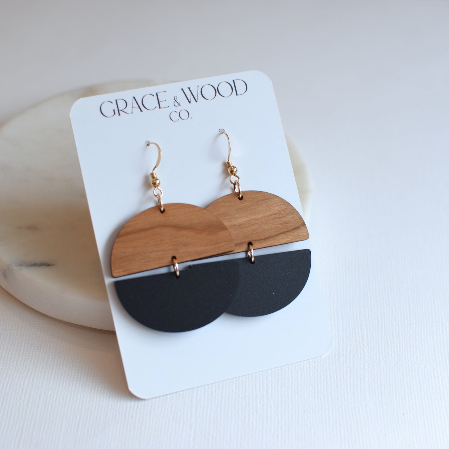 All Grace & Wood Co. earrings are handcrafted and lightweight. We use quality metals that are hypoallergenic including 14k Gold Filled, Sterling Silver, or Titanium for post