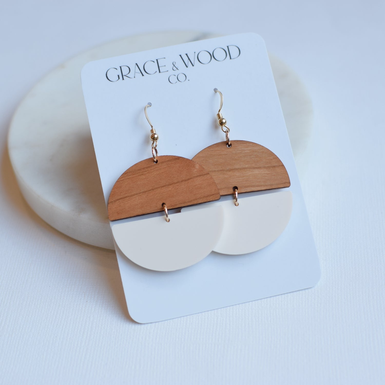 All Grace & Wood Co. earrings are handcrafted and lightweight. We use quality metals that are hypoallergenic including 14k Gold Filled, Sterling Silver, or Titanium for post