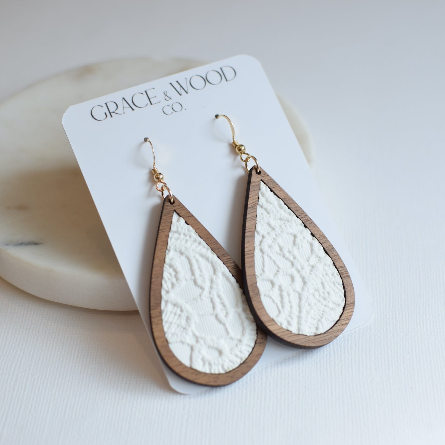 All Grace & Wood Co. earrings are handcrafted and lightweight. We use quality metals that are hypoallergenic including 14k Gold Filled, Sterling Silver, or Titanium for post