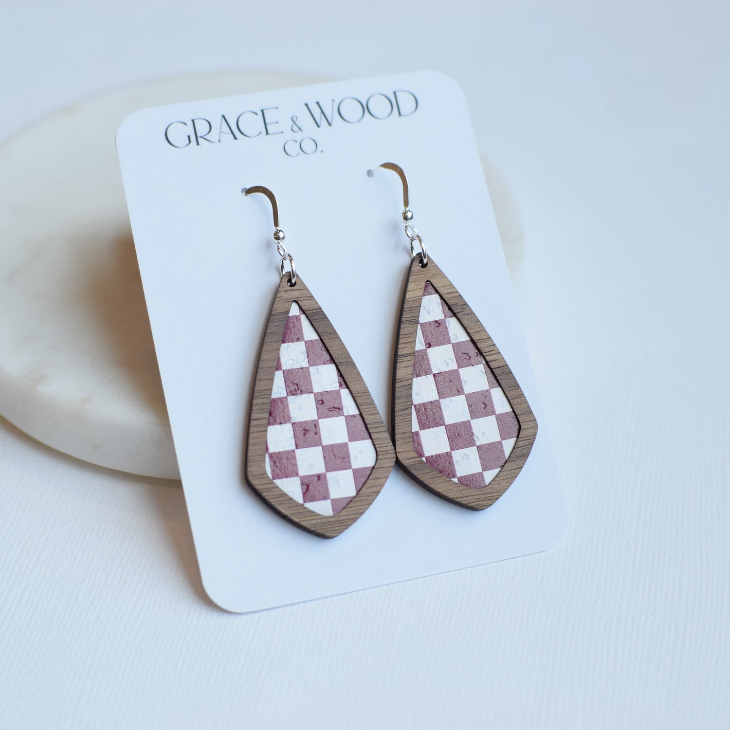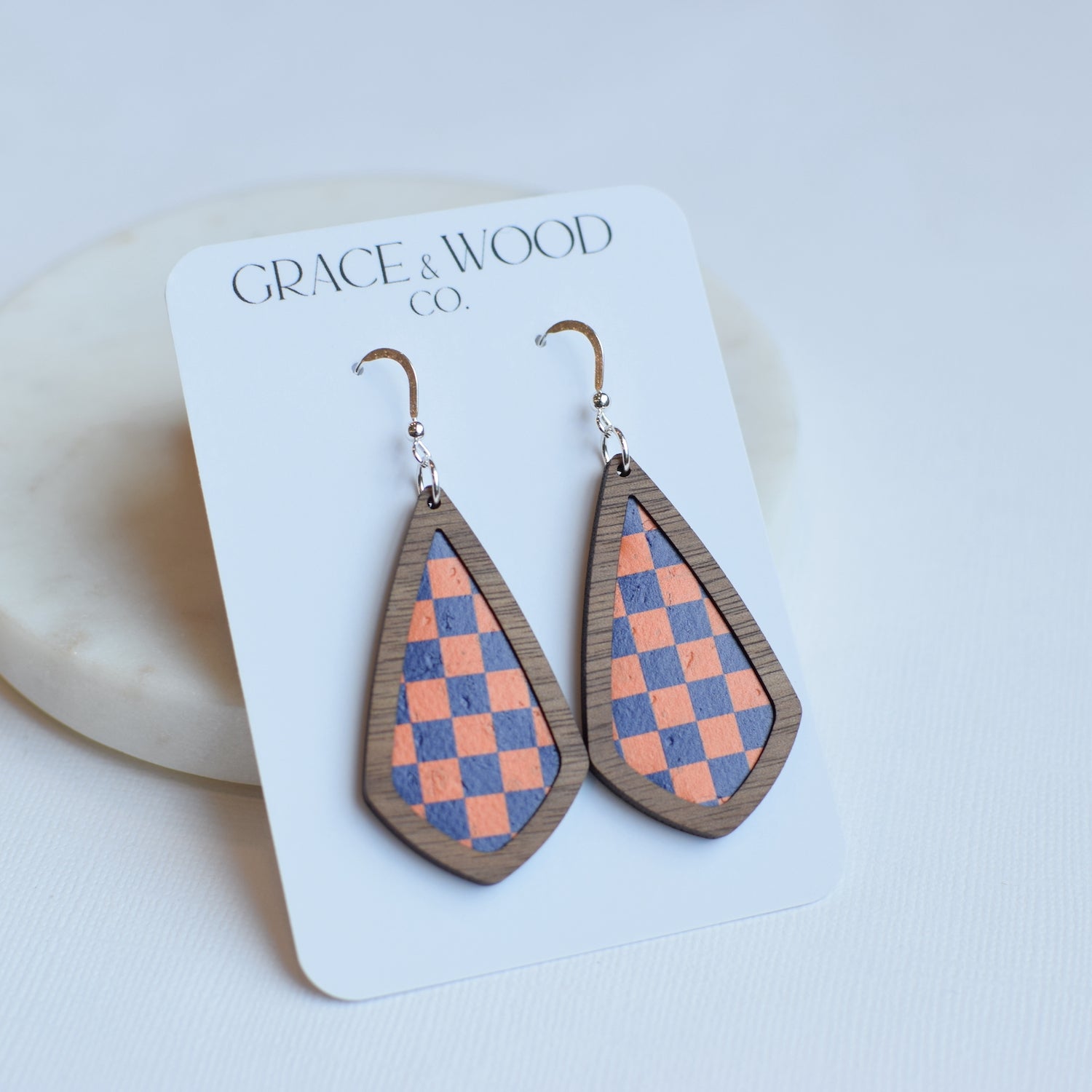 All Grace & Wood Co. earrings are handcrafted and lightweight. We use quality metals that are hypoallergenic including 14k Gold Filled, Sterling Silver, or Titanium for post