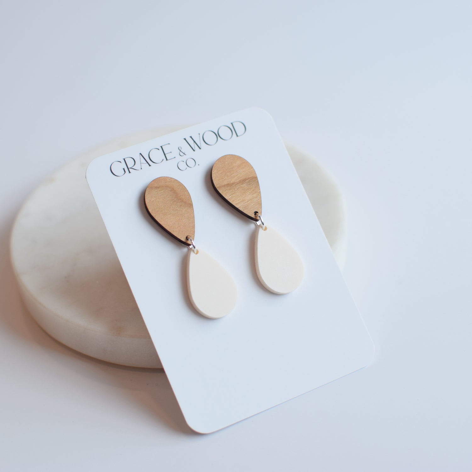 All Grace & Wood Co. earrings are handcrafted and lightweight. We use quality metals that are hypoallergenic including 14k Gold Filled, Sterling Silver, or Titanium for post