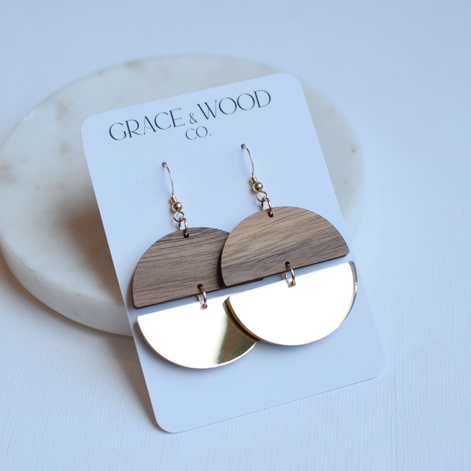 All Grace & Wood Co. earrings are handcrafted and lightweight. We use quality metals that are hypoallergenic including 14k Gold Filled, Sterling Silver, or Titanium for post