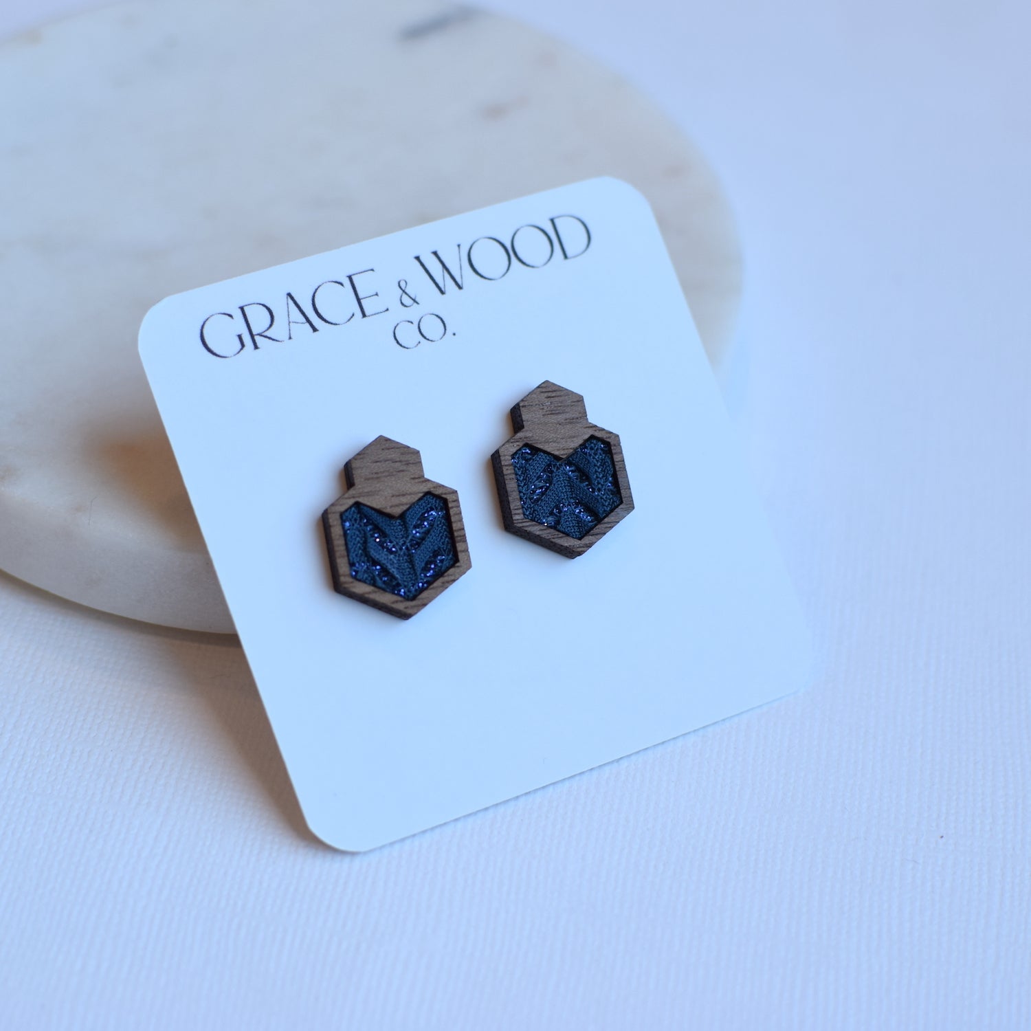 Navy Chevron Sparkle Wood + Hexagon Studs