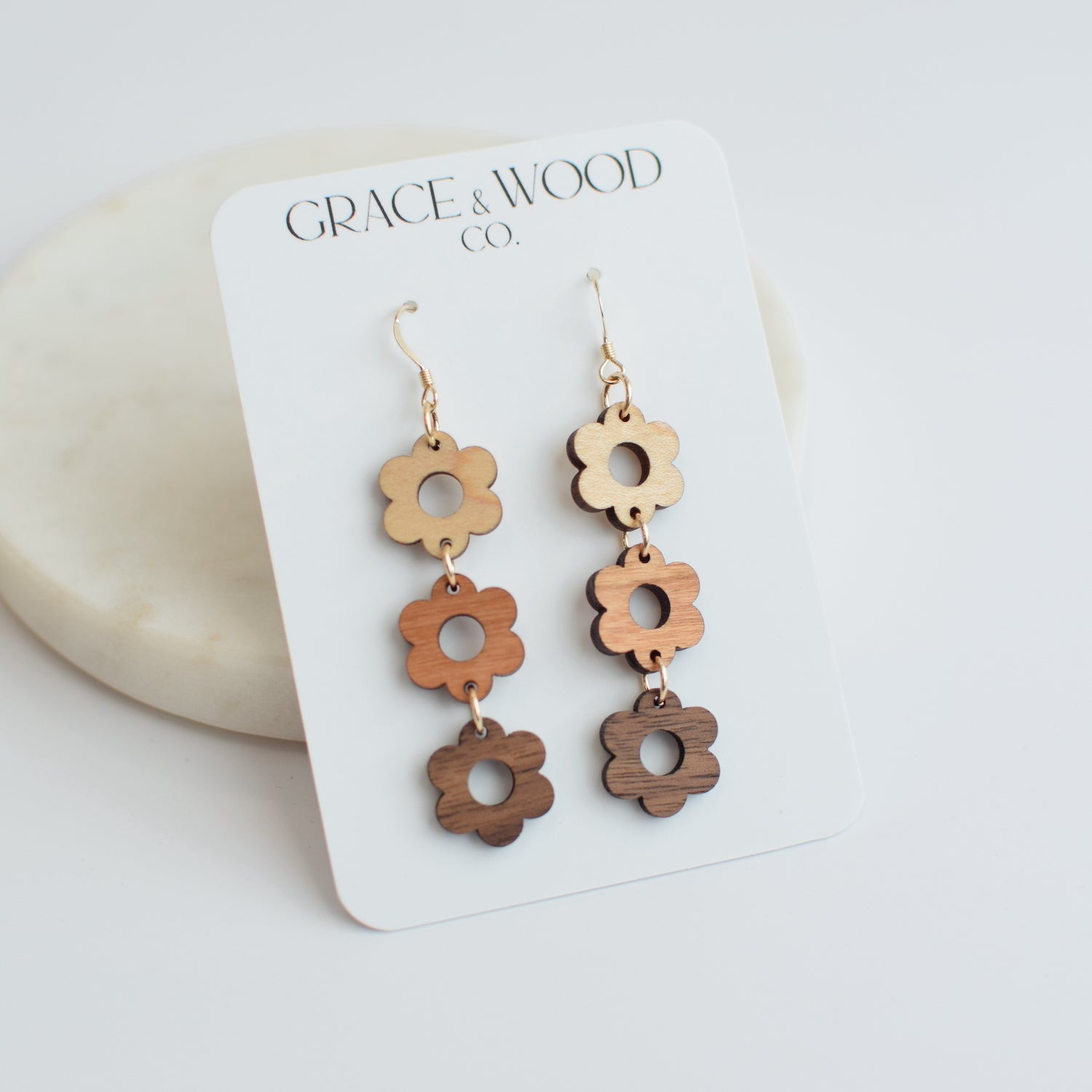 All Grace & Wood Co. earrings are handcrafted and lightweight. We use quality metals that are hypoallergenic including 14k Gold Filled, Sterling Silver, or Titanium for post