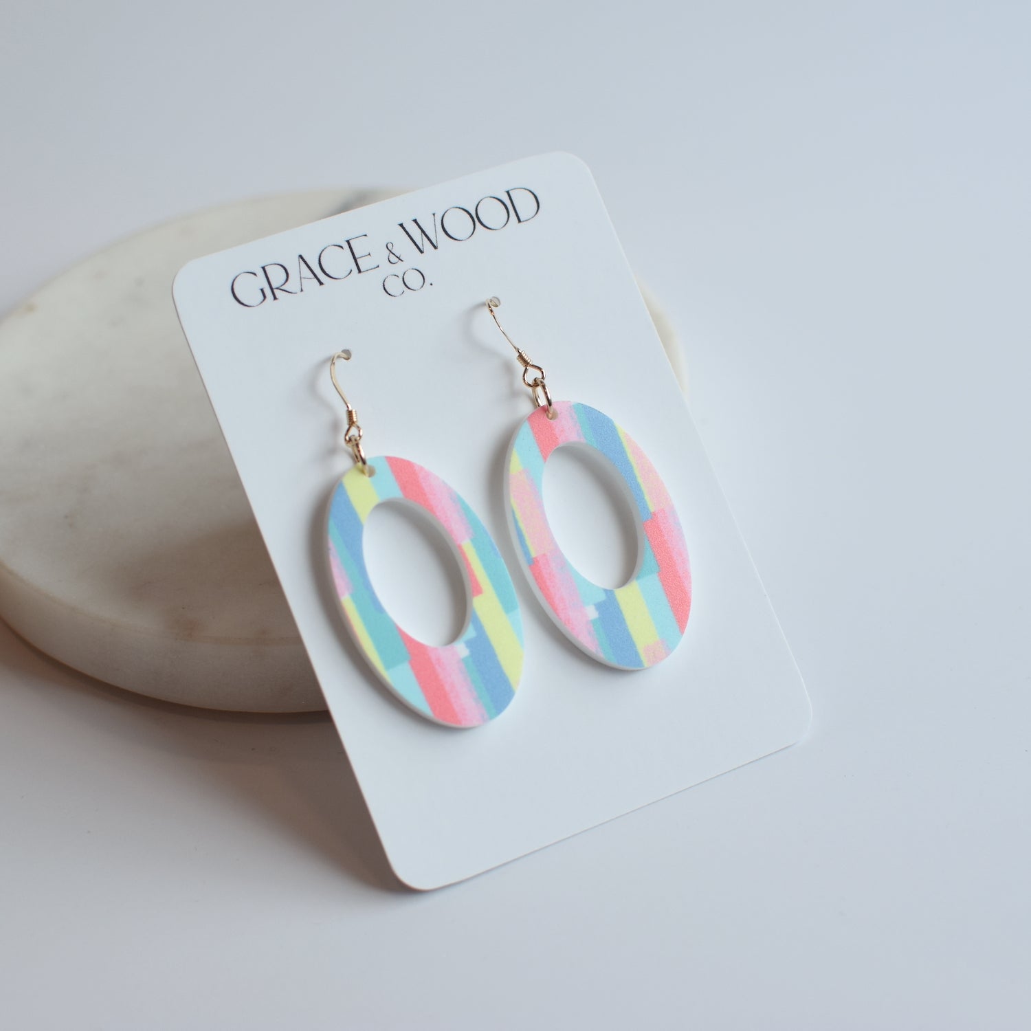 All Grace & Wood Co. earrings are handcrafted and lightweight. We use quality metals that are hypoallergenic including 14k Gold Filled, Sterling Silver, or Titanium for post