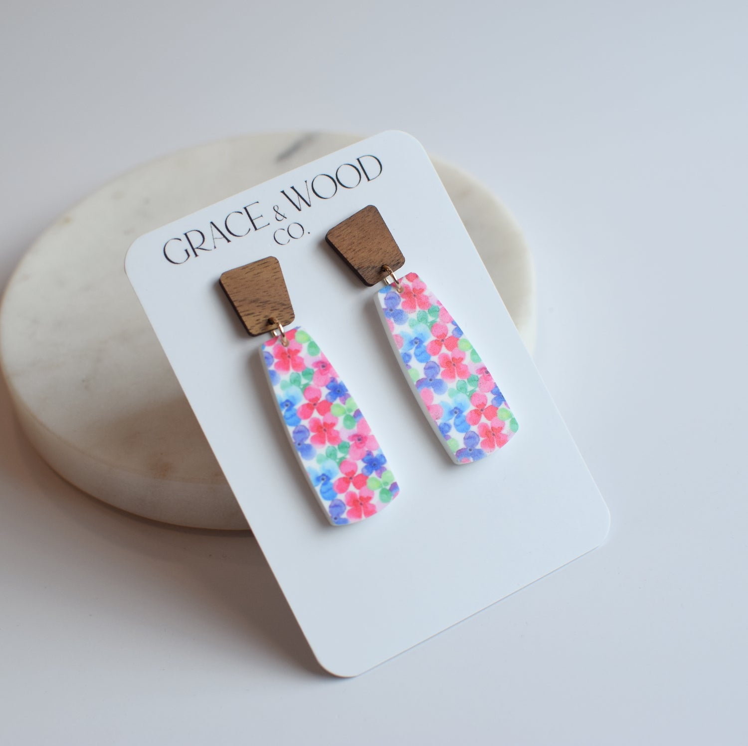 All Grace & Wood Co. earrings are handcrafted and lightweight. We use quality metals that are hypoallergenic including 14k Gold Filled, Sterling Silver, or Titanium for post