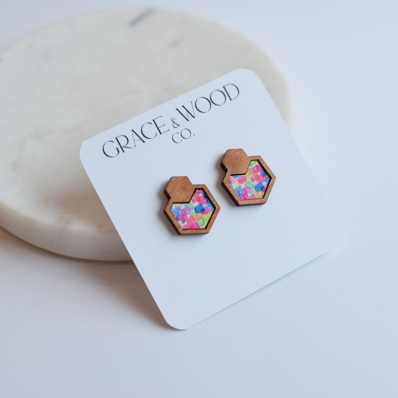 All Grace & Wood Co. earrings are handcrafted and lightweight. We use quality metals that are hypoallergenic including 14k Gold Filled, Sterling Silver, or Titanium for post