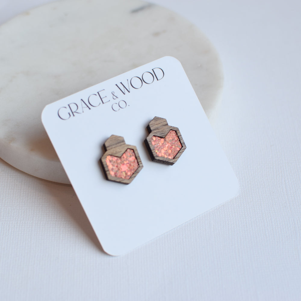 All Grace & Wood Co. earrings are handcrafted and lightweight. We use quality metals that are hypoallergenic including 14k Gold Filled, Sterling Silver, or Titanium for post