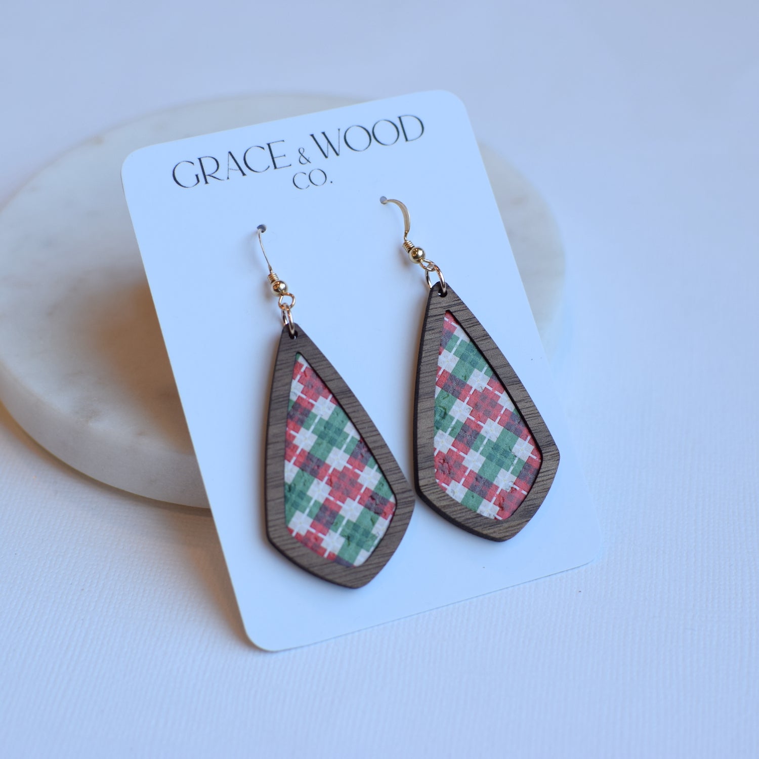All Grace & Wood Co. earrings are handcrafted and lightweight. We use quality metals that are hypoallergenic including 14k Gold Filled, Sterling Silver, or Titanium for post