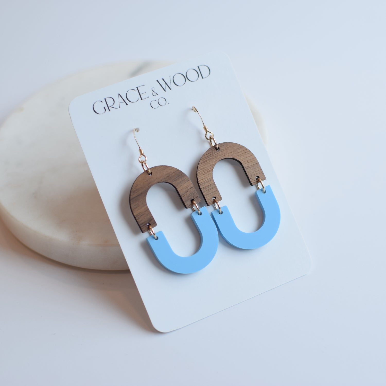 All Grace & Wood Co. earrings are handcrafted and lightweight. We use quality metals that are hypoallergenic including 14k Gold Filled, Sterling Silver, or Titanium for post